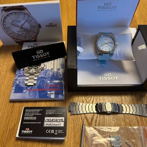 Selling my Tissot PRX Powermatic 80 with the original stainless-steel bracelet and an additional white rubber strap.