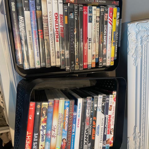 Samling av DVD-filmer med ulike titler og sjangre. Inneholder filmer som "Knocked Up", "The Day After Tomorrow", "Pirates of the Caribbean", "Newsroom", og flere. Passer for filminteresserte som ønsker et variert utvalg.