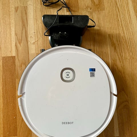 ECOVACS. Følger meg moppe del og kan brukes via app. Roboten er selvtømmende. Kan sette i luftfrisker om man ønsker dette. Eske og bruksanvisning følger ikke med. Noe stygge riper. Må hentes på Gullhaug, Bærum