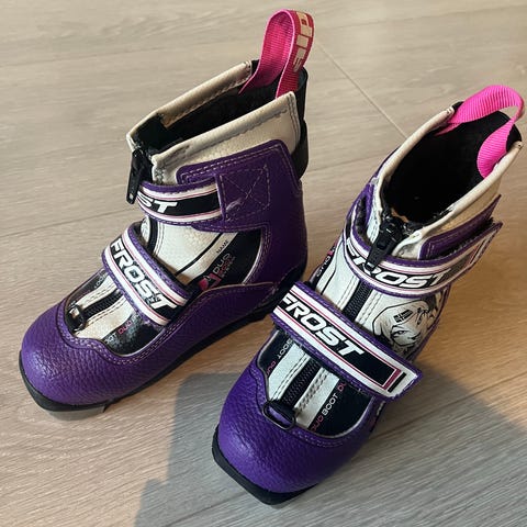 Vesla vår har vokst fra skiskoene sine i rekordfart. De selges derfor videre til mindre bein, som forhåpentligvis kan ta de med på flere eventyr :-)