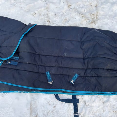 100g Amigo Insulator i str 125. Dekkenet er nyvaska men fortsatt litt møkkete/hårete (se bilde). Utenom dette er dekkenet helt og pent å ser ut som nytt. Mangler halestroppen.