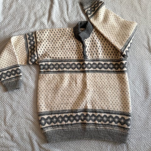 Selger håndstrikket ullgenser i str XL, kan måles.