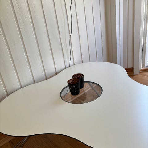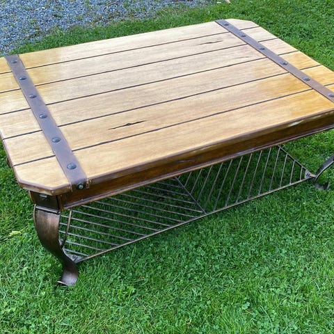 Salongbord i metall med tre bord i ett. Har synlig bruksspor, men dette gir bare et ennå mer rustikk preg synes jeg.