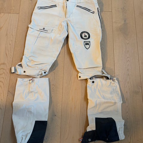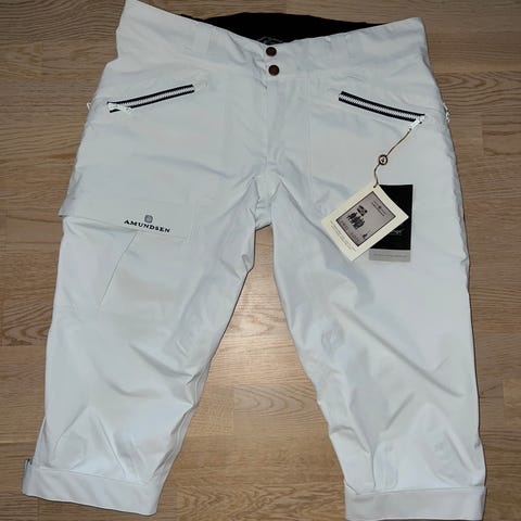 Blå Amundsen peak nikkers i str. L med hvite gamasjer (slim gaiter) også i str. L.
