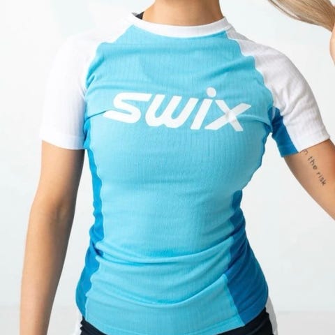 Den sitter tett på kroppen uten å føles stram, og det hurtigtørkende materialet med fukttransporterende egenskaper holder deg tørr.