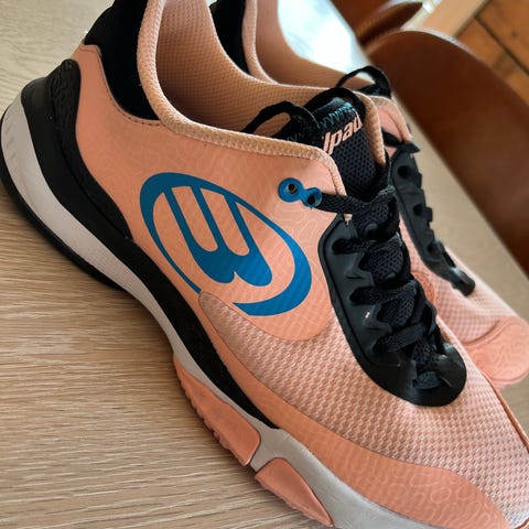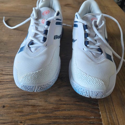 Bullpadel Beker 24I sko i størrelse 42. Skoene er hvite og grå, designet for Padel.
