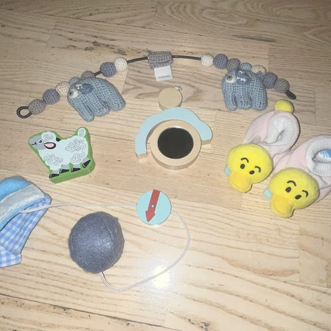 Dette barnevognkjedet er et vakkert stykke barnevogndekorasjon til glede for det lille barnet. Vognkjedet består av to små Fanto-elefanter og små kuler i forskjellige farger. Fest kjedet ved hjelp av de to treklypene, over barnevognen eller bilsetet for å stimulere og aktivere babyens sanser. Ettersom dette produktet er håndheklet, er hvert produkt unikt, og det er derfor det også er variasjoner.
