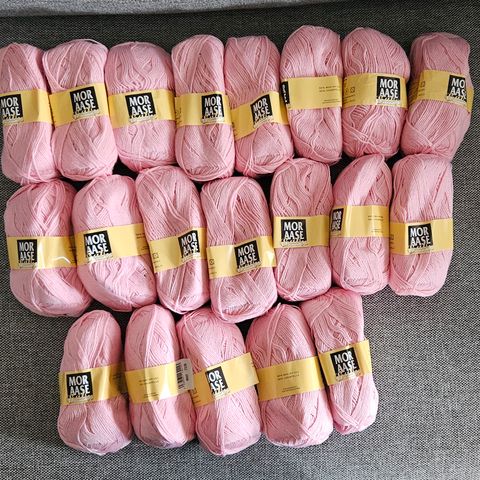 Mor Aase ullgarn fra Sandnes garn i flere farger, inkludert grå, gul, hvit og oransje. Hver nøste veier 100 gram. Garnet er laget av syntetisk materiale og egner seg til ulike strikke- og hekleprosjekter.