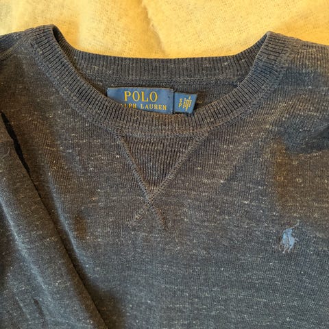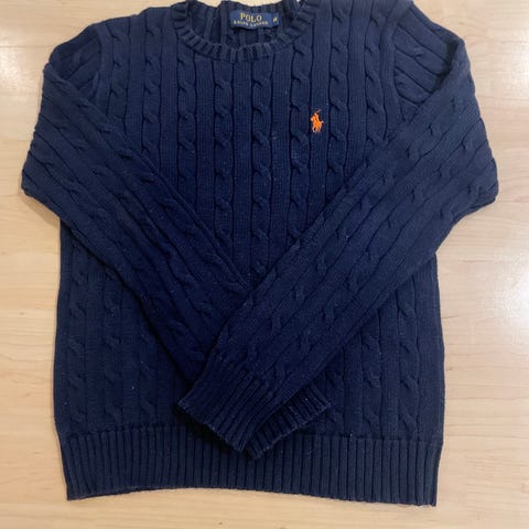 Polo Ralph Lauren genser i blå farge, laget av bomull. Passer for gutt i størrelse 164. Genseren har rund hals og ribbestrikkede kanter.