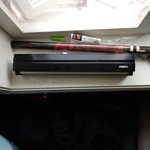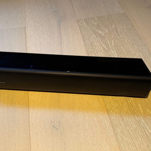 Liten lydplanke med god lyd, bluetooth tilkobling + inkludert jack/AUX kabel, og innebygd batteri så kan lett tas med og brukes trådløst.