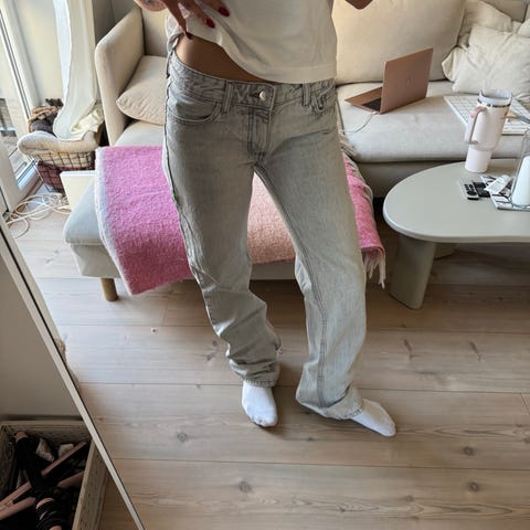 Jeans med høyt liv fra Zara selges da den ikke blir brukt. Har kun brukt den en gang og fremstår derfor som ny. Ingen merker og er normal i størrelsen. Veldig behagelig å ha på!