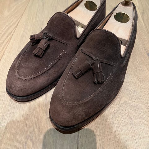 Selger et par pent brukte sorte randsydde penny loafers i str 43,5. Skoene er kjøpt hos Skomaker Dagestad i Oslo sommer 2025, og selges grunnet de er noe for små til meg… Flott penny loafers med en noe bredere lest, og lengre fasong, som sikrer at skoen ikke glir av under bruk. Det medfølger original skoeske. Skotre medfølger ikke.