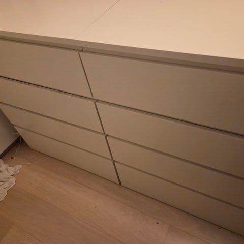 Slitt overflate på topp, med litt malingsøl. Ellers virker skuffene som de skal. Foruten toppen er den ren og feilfri. Hvis du har behov for kjeller-oppbevaring el. og kan bære den med deg, er den din! Førstemann til mølla!