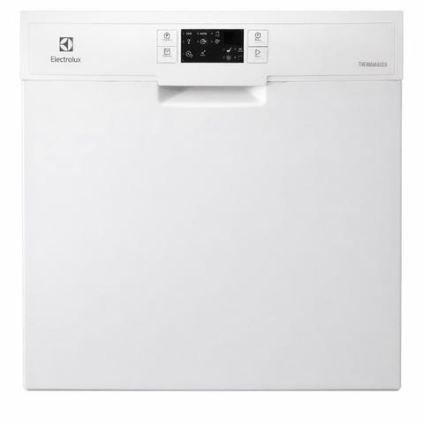 Electrolux underbygd oppvaskmaskin med hvit finish. Designet for integrering under benkeplate, passende for standard kjøkkenløsninger.