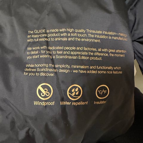 • 100 gram per kvadratmeter syntetisk Thinsulate-isolasjon i kropp og ermer