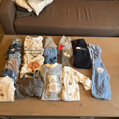 *enkelte plagg er i størrelsen under/over, men brukt når barnet brukte størrelse 68.