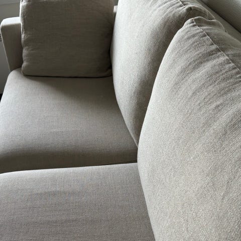 165 i lengden, sittehøyde 43 og dybde 90 cm