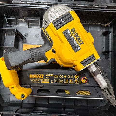 DeWalt 18V XR børsteløs spikerpistol med batteridrevet motor. Fungerer perfekt