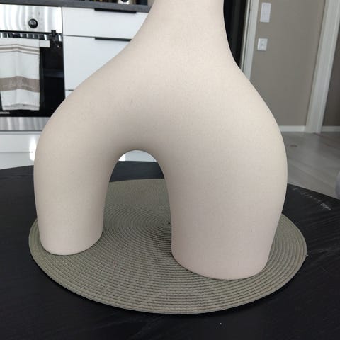 Høy vase i steingods . Ca 30 cm høyde . Sender ikke