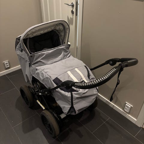 Emmaljunga barnevogn i svart farge. Vogn med robust ramme, justerbart håndtak og avtagbar bagdel. Passer for barn i barnevognsalder. Materiale og design egnet for utendørs bruk.