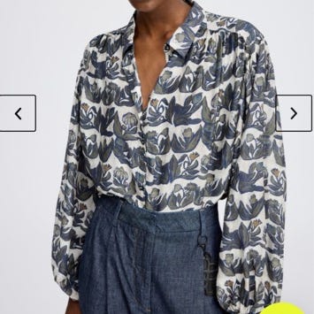 Nydelig bluse/skjorte i grå silke. Størrelse 40. To brystlommer og knepping på ermene. Veldig lekkert snitt.