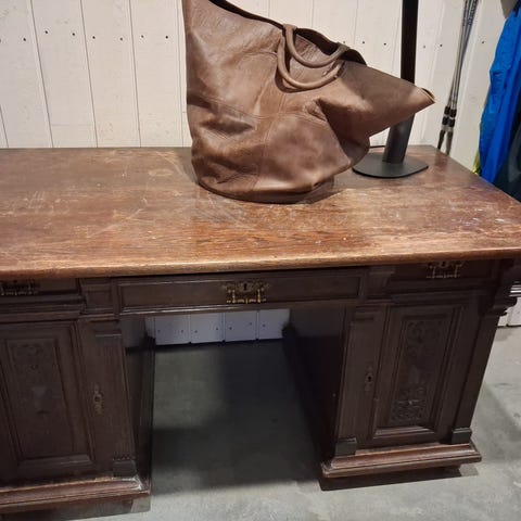 Sjarmerende klenodium. Håndlaget skatthold/skrivebord fra ca 1950. Meget godt ivaretatt. Gode skuffer til oppbevaring på begge sider. Like fint i stua som på hjemmekontoret.