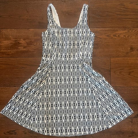 Hvit minikjole med stretch fra Divided H&M i str.38. Kan nok passe både S og M. Kjøpt for mange, mange år siden. God å ha på og fin og lys til å brukes feks på sommeren. Figurnær og sitter godt i livet. Kan skimtes gjennom om man har svart eller mørk bh under.