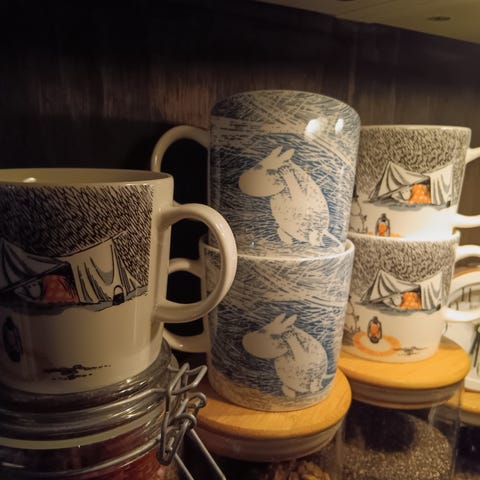 Mummihuset er formet som en rund kakkelovn og er hjemmet til Mummipappa, Mummimamma og Mummitrollet.