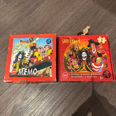 Kaptein Sabeltann Memo brettspill og puslespill. Spillet består av memo-kort med Sabeltann-tema og et puslespill. Egnet for barn fra 3 år og oppover. Selges samlet