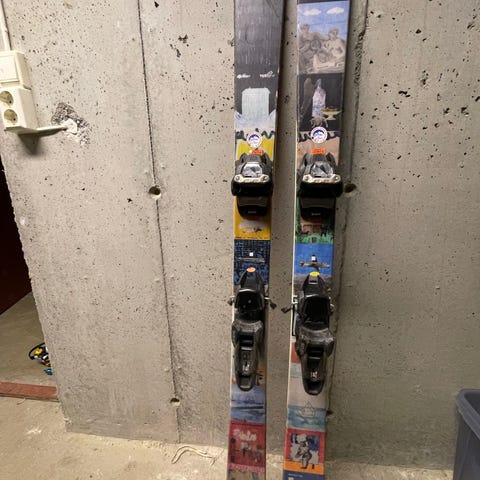 Brukt Twin tip ski, en del slitasje merker på oversiden såler ser bra ut