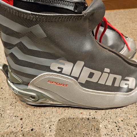 Gode Alpina racing langrennsski selges rimelig. Str 44 til NNN binding. Justerbar hælkappe.