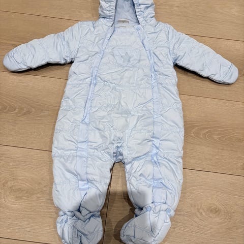 Meget pent brukt vinterdress med mykt og deilig fleecefor. Avtakbare votter og fotposer med trykknapper som gjør det lett å kle på. Perfekt for bæresele og andre turer ut om vinteren og tidlig vår.