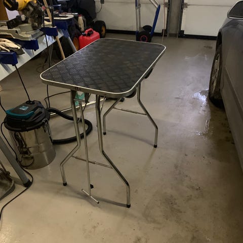 Sammenleggbar rampe med målene: Mål: L 100 - 183 cm x B 43 cm. Er synlig brukt, men ingen feil på den. Har vært brukt til Berner Sennen hund