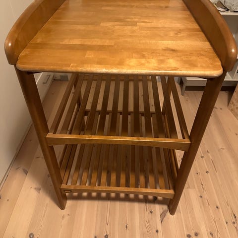 Oppbevaringsskuff og og to romslige hyller under. Kan ikke demonteres. Må hentes.