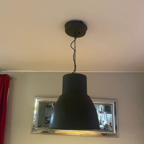 Pen og stemningsfull lampe fra IKEA selges. Lampen er hel og fin, det er ikke kopp rundt ledningen siden den har hengt i skråtak. Det kan enkelt kjøpes ny ledning med kopp på IKEA dersom man ønsker det.