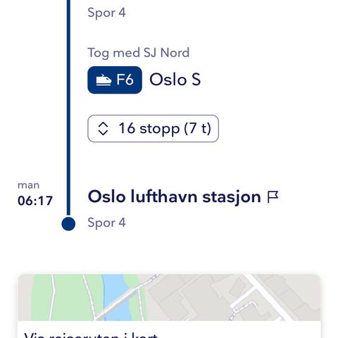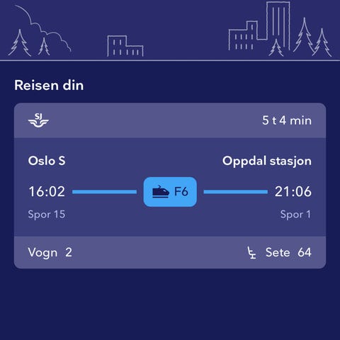 Togbillett fra Oslo S til Trondheim S kl 10 - 13.januar
