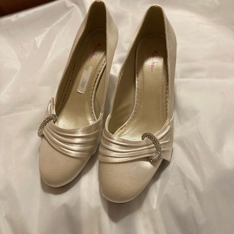 De ser nesten ikke brukt ut. Det er klistret på en ekstra såle som gir god friksjon slik at de ikke er glatte. De er lette å danse i, og jeg trengte ikke bytte til lave sko før etter 9-10 timer!