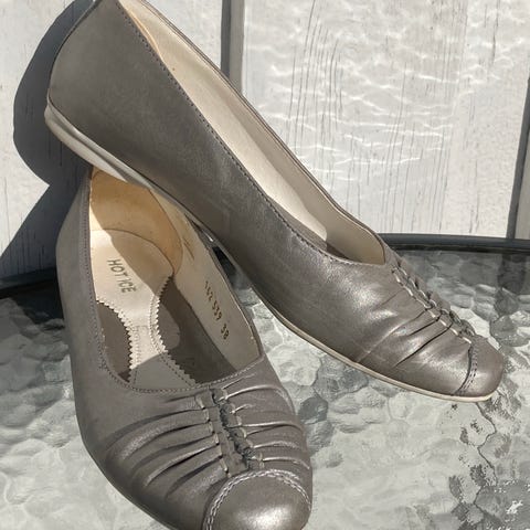 Fine ballerinasko i størrelse 38. Skoene er i svart med en blank overflate og har en dekorativ sløyfe på fronten. Kun brukt ved 2 anledninger før de ble for små.