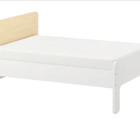 Med madrass. Senge må hentes. Det er to merke på det som du ser på bildet, klistremerke kan skrapes vekk. Senga er ikke demontert ser du på siste to bilde med madrassen.
