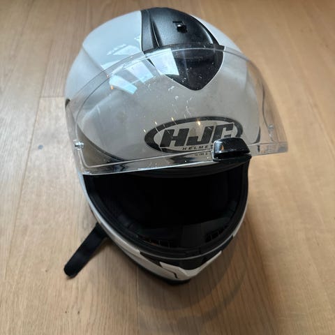 HJC ZF-10 motorsykkelhjelm i svart farge, størrelse M (58 cm), med vekt på 1499 gram. Hjelmen er godkjent etter ECE R 22-05 standarden.