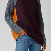 Victoria Beckham høyhalset genser i ull, flerfarget, størrelse M. Genseren har en ribbestrikket struktur med fargeblokker i svart, grått og rødt. Passer for kvinner.