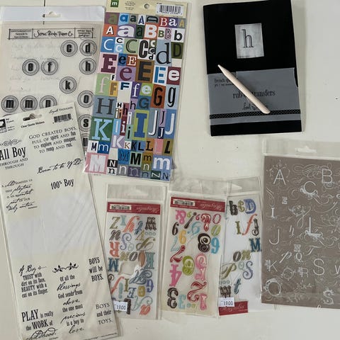 3 åpnede pakker med alfabet/tall/tegn rub-ons -mye igjen