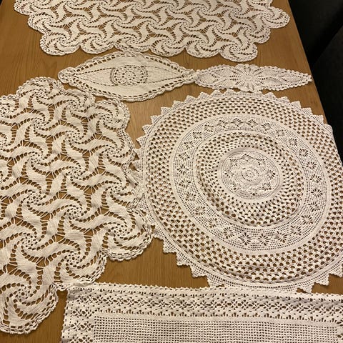 Lot med hekla duker i bra stand.Ny vasket og ingen flekker