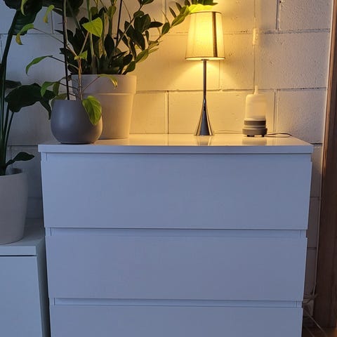 Selger to hvite natbord. Kjøpt i Jysk.
