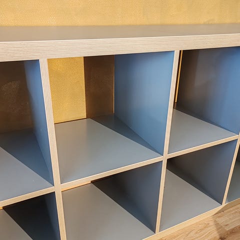Selges også med lister (se bilde) som gjør at hyllene også kan stå hver for seg.