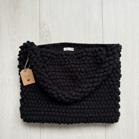 Selger en håndstrikket veske laget med mykt og chunky garn. Vesken er perfekt som en pyntetilbehør✨