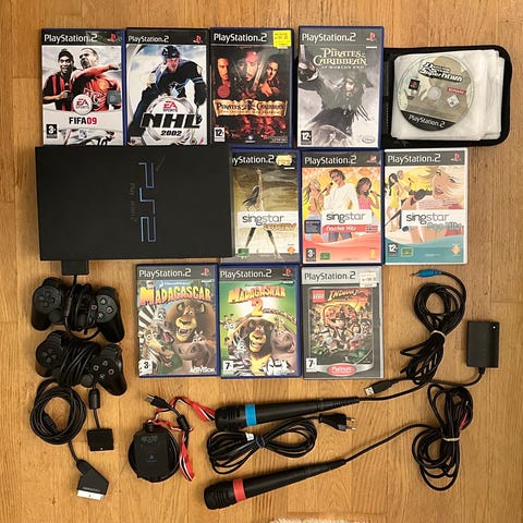 Sony PlayStation 2 Slim spillkonsoll med mye tilbehør: