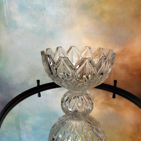 Triton trumpet i beige og brun fargetoner. Skjellet har en naturlig form og struktur, egnet som dekorativt element i hjemmet.