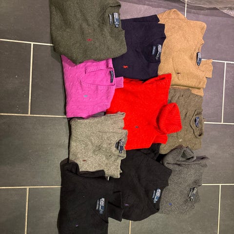 Pakkepris på 10 Ralph Lauren-gensere, både dame- og herremodeller i størrelsene S til XL.