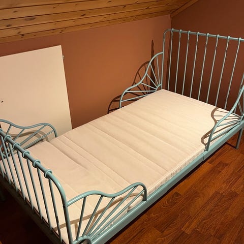 Brukt av ett barn i ca 3 år. Nylig flyttet over til besteforeldre for videre bruk, men ble dessverre for stor i rommet der. Selges med lite brukt gjestemadrass til.